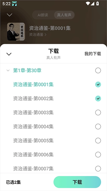 2. 在弹出的选集中,勾选你想要下载的集数,完成选择后,点击“下载”按钮即可。