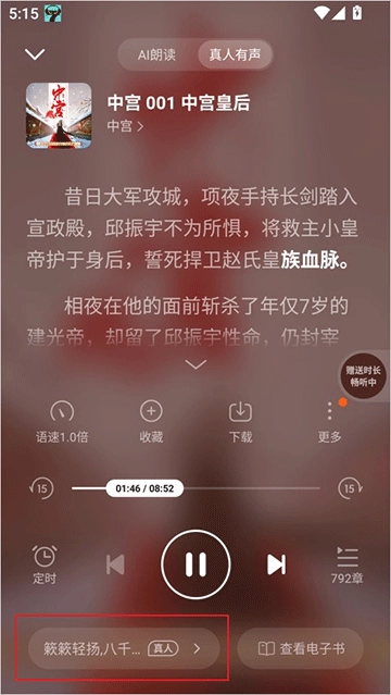 1. 开启app,寻觅到想聆听的书籍,点击后进入播放界面。