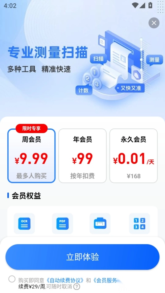 4. 随后勾选“购买即同意”选项,接着点击“立即体验”,如此便可开通 VIP 会员。