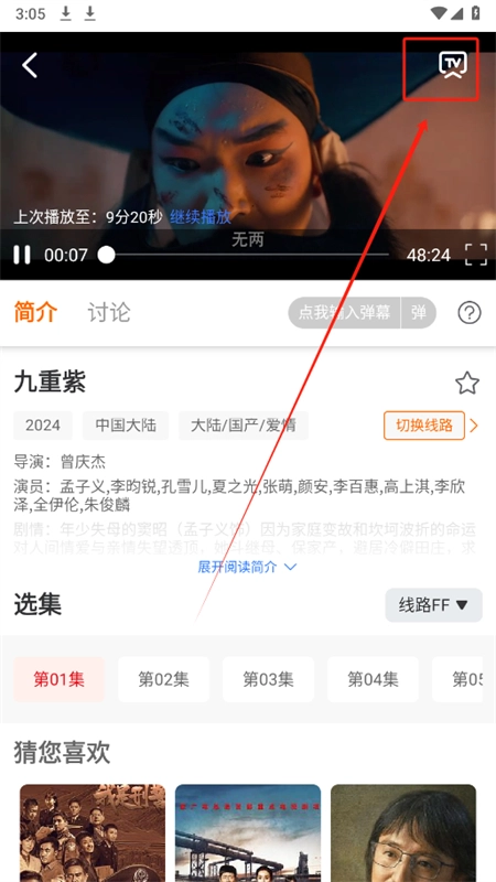 2、进入播放页面后,点击右上方的投屏按钮即可
