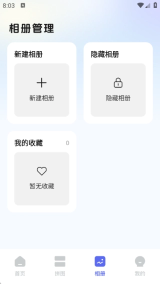 4、在相册中可以新建相册,同时可以进行隐藏相册等操作。
