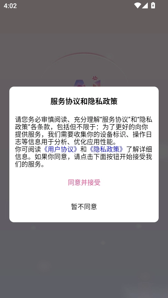 1.首先打开软件点击“同意并接受”按钮进入APP