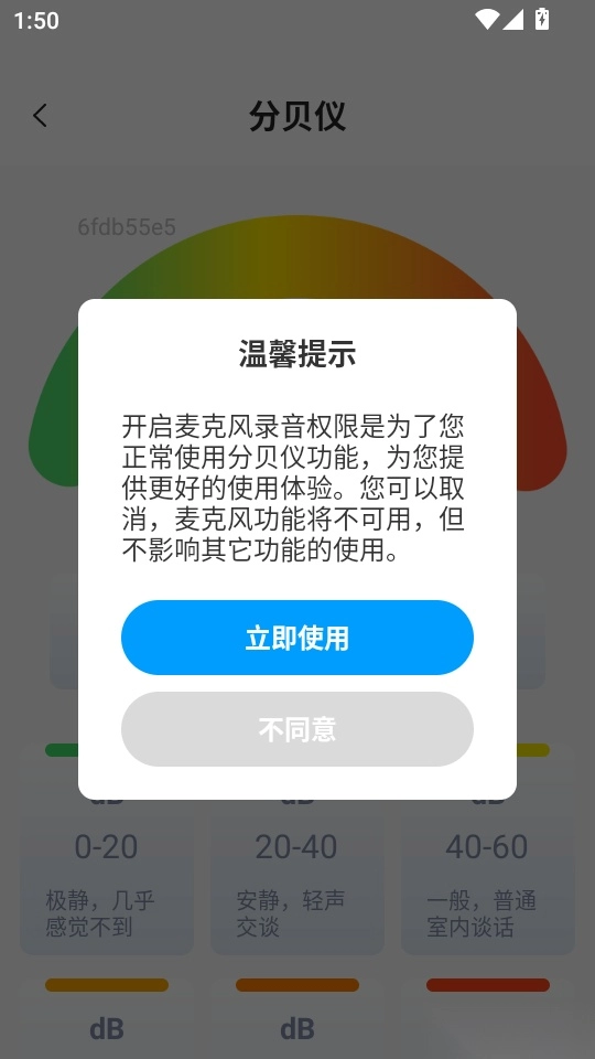 4.在然后确认开启麦克风权限,就可以使用分贝仪了