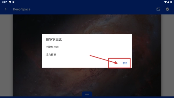 3、在预览宽高比选择框中,可按需选择匹配显示屏填充预览或点击取消,完成对应预览设置操作。