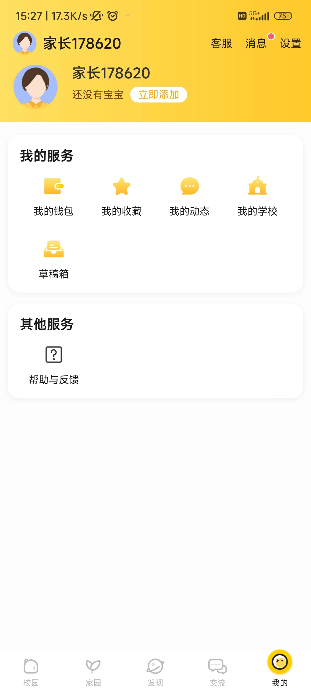 1. 开启掌通家园app,首先点击下方的【我的】,接着点击右上角的【设置】。