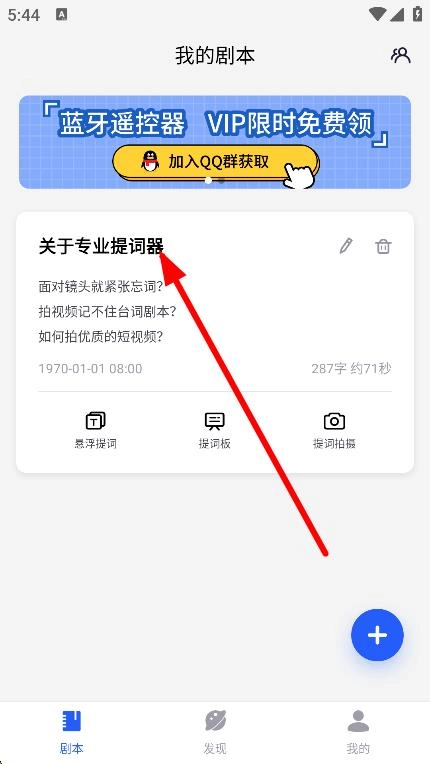 1、在我的剧本页面,点击关于专业提词器,触发悬浮窗权限提示。