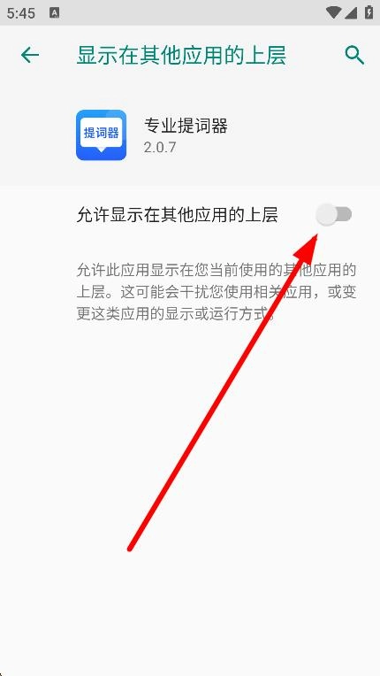 3、在权限设置页面,开启允许显示在其他应用的上层开关。