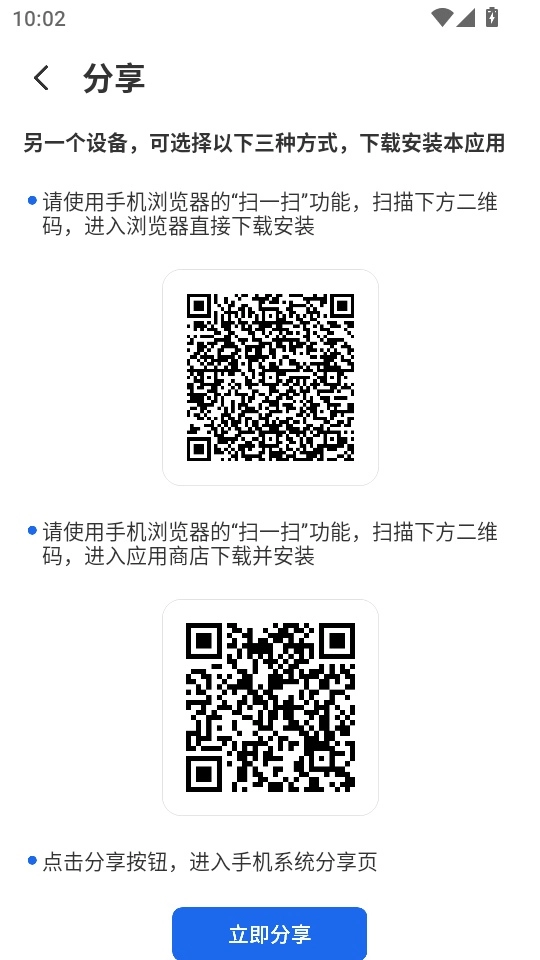 5.这样一来,用户便能借助浏览器扫一扫功能,或者点击“立即分享”按钮,实现应用的分享。