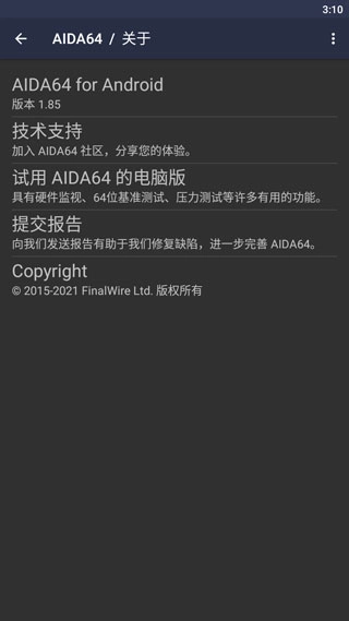 1. 开启aida64手机版本,在此处你能够查看手机的硬件相关信息。