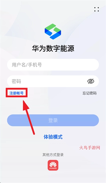 先下载华为数字能源app,完成安装后打开该应用。待进入登录界面,点击“注册账号”选项。