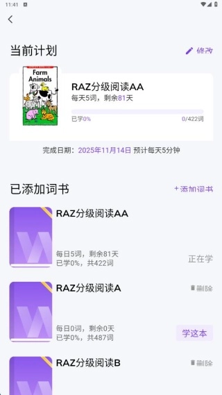 2、首页展示了丰富的学习方式,可以按照计划每日背诵单词。