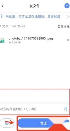 4、输入接收人的地址或识别码信息,然后点击发送,即可完成文件传输操作。