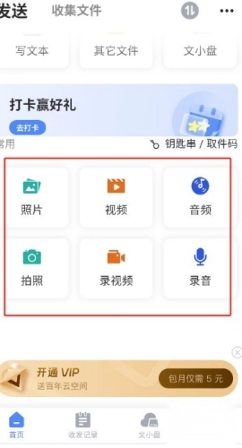 7、支持多种发送图标供您选择,涵盖录制视频、录音、照片、视频以及文档等选项。