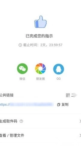 5、任务创建完成后,将生成的链接分享给对方,对方即可通过该链接上传文件给你。