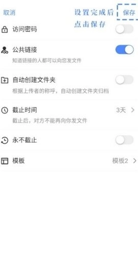 4、设置完成后,请点击“保存”,再次确认所有信息无误后,点击“收集文件”以生成任务链接。