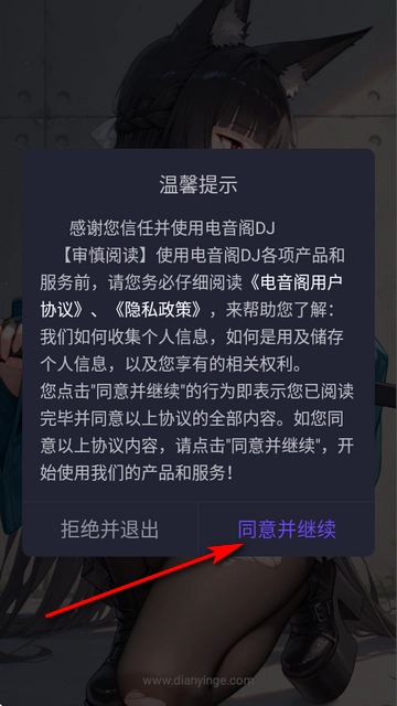 1、首先在本站下载电音阁软件的最新共存版本,首次进入时同意温馨提示。