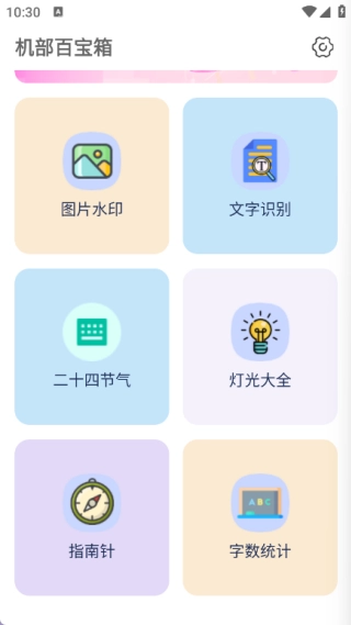 机部百宝箱是一款极为实用的工具集软件,它功能丰富多样,界面简洁,操作高效。该软件能够一键为图片添加个性化水印,这不仅能有效保护原创作品,还能彰显独特风格。此外,它还具备文字识别功能,只需拍照,就能快速提取文字内容,从而省去手动输入的繁杂步骤。
