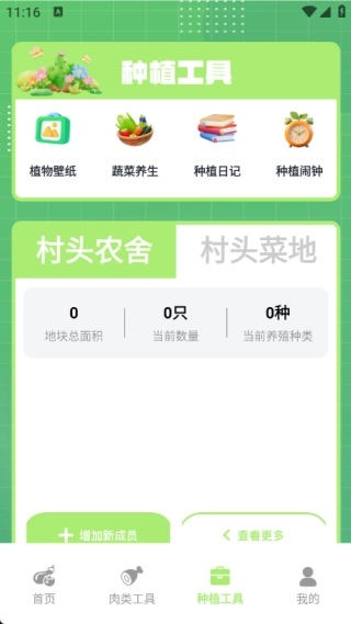 4、在种植工具中有植物壁纸、蔬菜养生、种植日记及种植闹钟等服务。