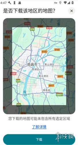 4、然后,选择您需要的地图区域,并点击【下载】按钮。