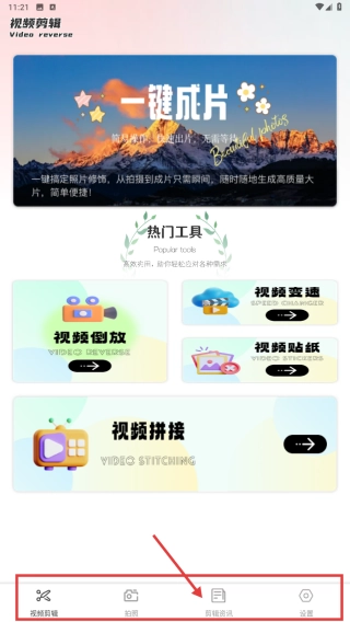1、打开视频编辑类APP,点击底部剪辑资讯选项,进入剪辑资讯页面。