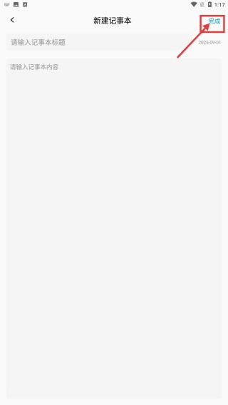 3、在新建记事本页面,输入记事本标题和内容,完成新建记事本操作。