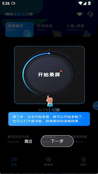 1、快速设置:要是你想进行常规录屏,打开软件后,从全屏或区域模式中选择其一,把画质、声音等基本参数设置妥当,就能开始录制了。