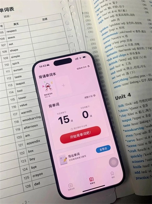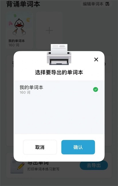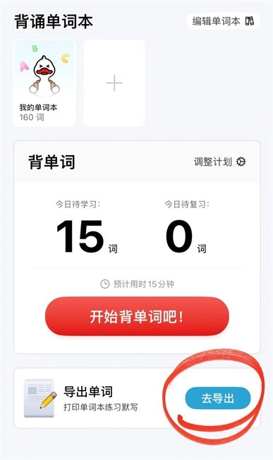 4. 于背单词的位置点击“导出单词”,挑选想要导出的单词,为文件进行命名。