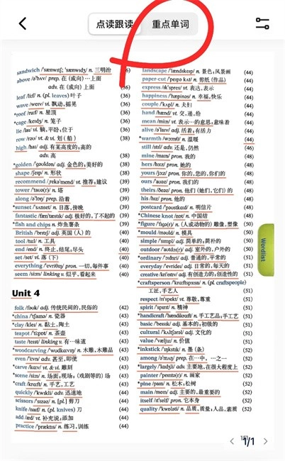 2. 对教材上的单词表进行拍照,App 具备连续拍摄多页的功能,能让你一次性拍完整个单词表,十分便捷。