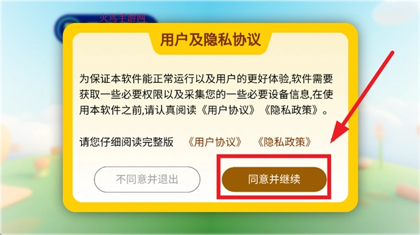 安装并打开哆视佳视觉训练,在用户及隐私协议提示界面点击同意并继续
