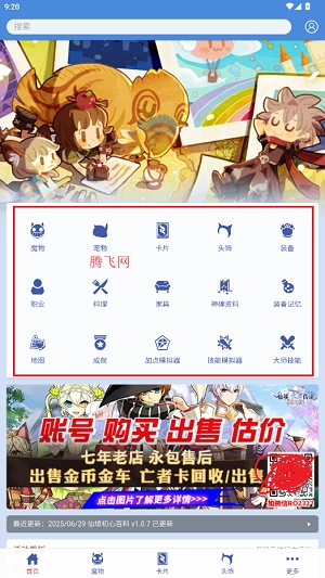 1. 当我们进入仙境初心百科,就能使用如图所示的众多功能。