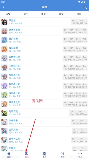 2. 在魔物栏里,我们能够看到所有魔物的数值。