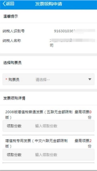 2、点击 “发票领购申请”