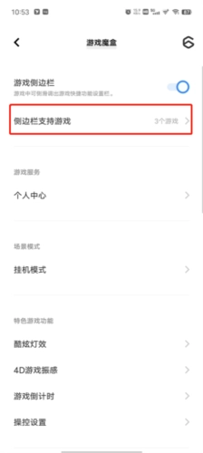 第二步:点击“侧边栏支持游戏”: