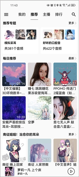 1、每天会发布多种类型的音声,包括无人声、有人声等,还涵盖舔耳朵、抓耳朵等自然声音。