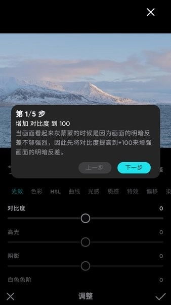 画面呈现出灰蒙蒙的状态,原因在于其明暗反差不够显著。所以,首先要把对比度提升至 +100,以此强化画面的明暗反差。