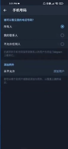 在聊天时,当你成功发出信息,界面上会出现一个勾。待对方阅读后,会再添一个勾,即显示两个勾。另外,纸飞机聊天软件注册需用到电话号码,要是设置不妥,你电报账号的电话号码可能会被他人看到。为避免这种情况,你可在“隐私和安全”(Privacy and Security)设置中,将电话号码设为完全不可见(或仅联系人可见),同时把“谁能通过电话号码找到我”设置为“我的联系人”,而非“所有人”。