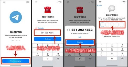 \\n 第一步:打开已经安装好的Telegram电报,并点击“START MESSAGING”\\n