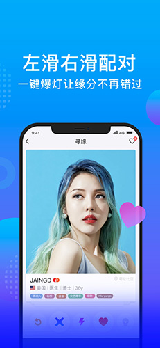 4、左滑不喜欢,右滑喜欢,与全球帅哥即时配对。一见钟情直接爆灯,缘分不再错过。