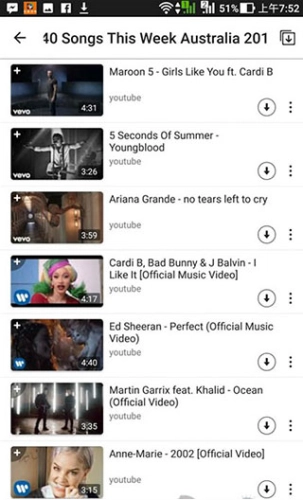 4、只需通过目录或简单的输入艺术家名称和歌曲名称来搜索即可.一旦你查找到了自己所需即可开始播放视频或直接将视频到程序中