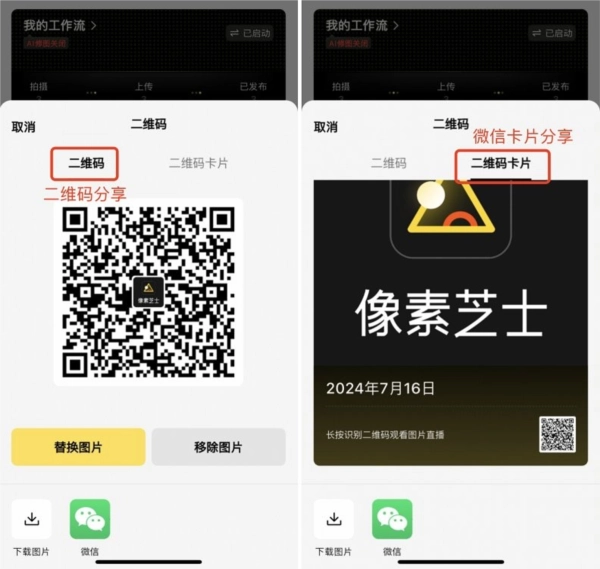 2、二维码分享:两种二维码样式供您自主选择,还可以DIY二维码上的图片哦。