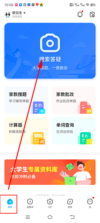 1、进入首页,点击打开“家教批改”