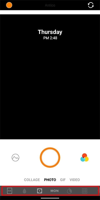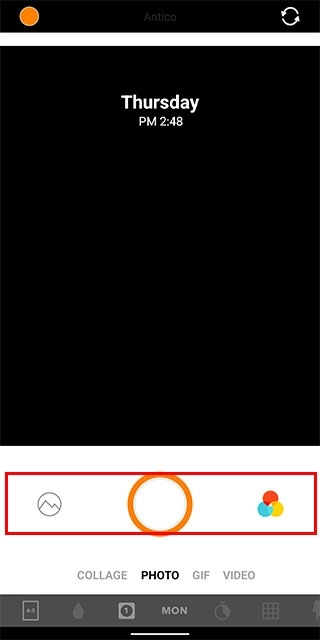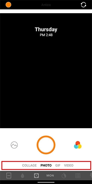 3、拍摄模式切换区位于工具栏上方,从左到右依次是:拼贴连拍、普通拍照、GIF 录制、视频拍摄,可实现多种创意表达形式。