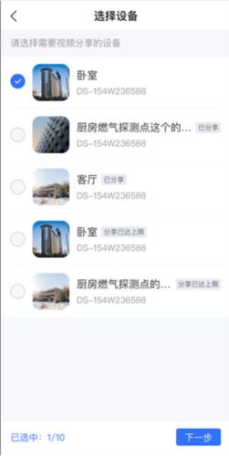 选择分享的设备:分享者可以在设备选择列表中查到设备是否可以分享