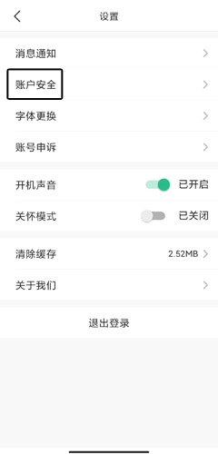 2、在设置页面中点击账户安全按钮;