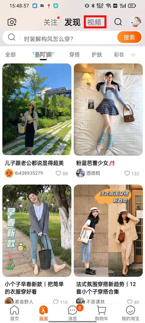 手机版淘宝逛逛入口,是淘宝内的商品内容推荐页面。它专注于为消费者推荐优质好物,提供多样风格的穿搭,分享高品质商品,全方位满足用户的各类需求。