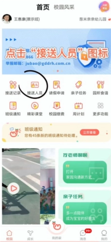 2、在首页点击接送人员选项。
