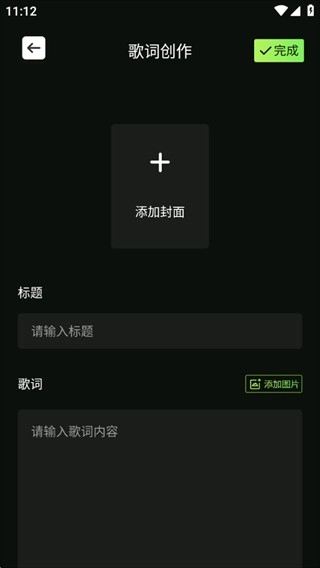 2、点击就能创建歌词和添加封面;