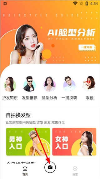 1、立即拍照换发型,换发型测脸型使用发型设计中的拍照功能即可拍照更换发型;