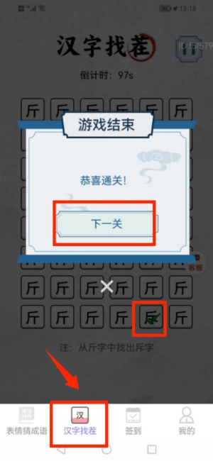 3、进入汉字找茬游戏,限时找出差异汉字即可解锁新关卡。