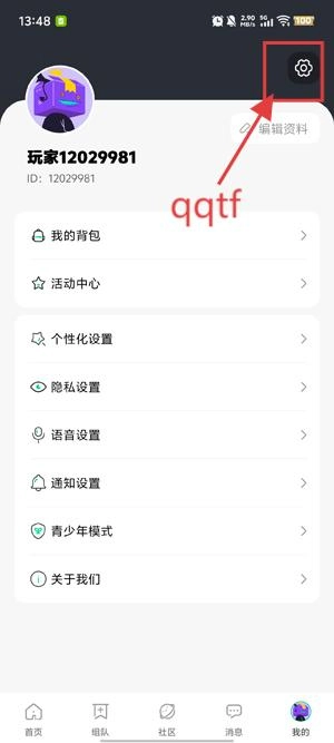 打开你的Goup游戏社区,在个人中心点击设置功能。